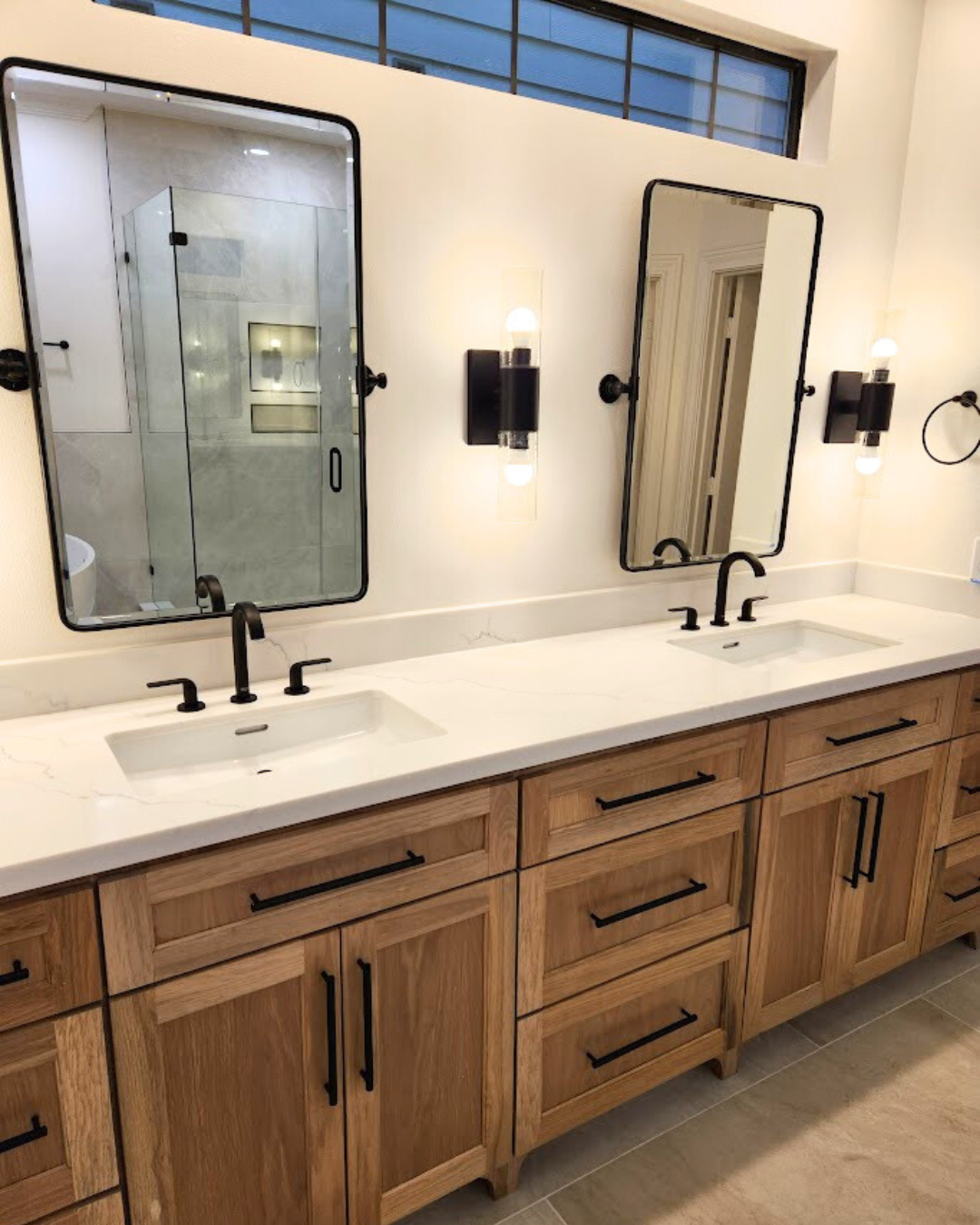 For your bathroom, our selection of materials and fixtures can fit customer’s needs. From budget conscious options to more premium vanities, designer tiles, or contemporary lighting options.